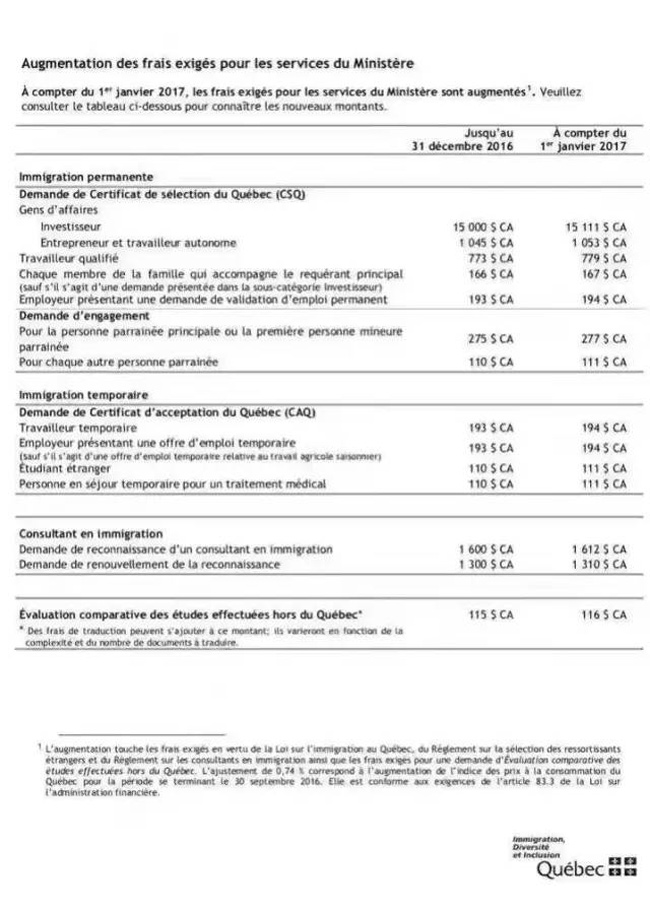 温哥华分公司收到消息,加拿大魁省移民局近日宣布上调各类签证申请费用,自2017年1月1日起,魁省移民申请费用将全线上涨!