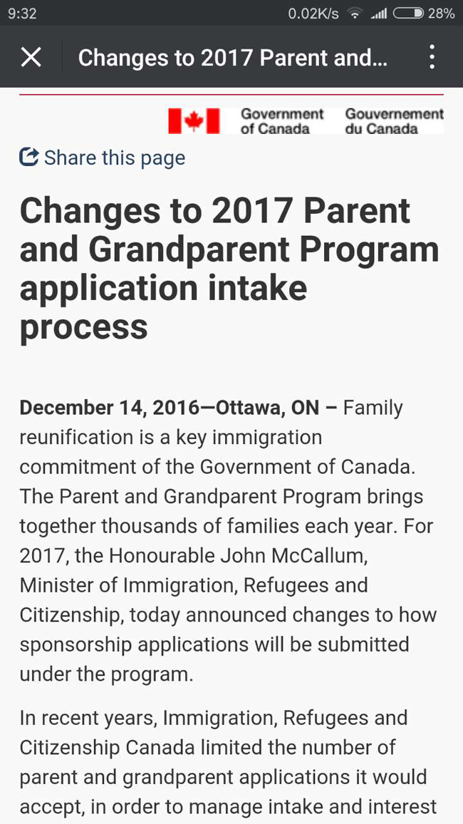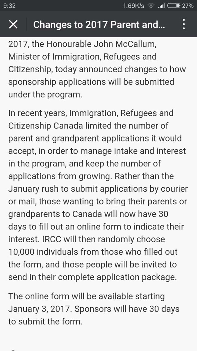 1.2017年1月3日-2017年2月2日期间,所有申请父母(祖父母)团聚移民的申请人必须完成在线表格的提交。
