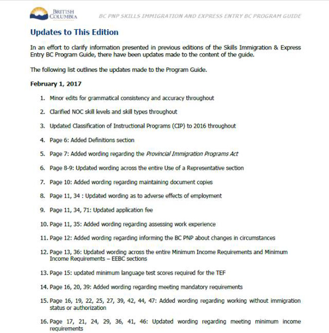 不得不承认,踏入2017年,无论是联邦还是BC省,利好的移民消息源源不断!当地时间2月1日,BC省提名办公室公布了已经获得通过的最新版申请指南,并于即日起实施。