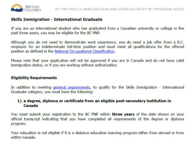 3.BC省提名国际生类别(BCPNP-International Graduates)毕业三年内都符合资格,可以递交申请。