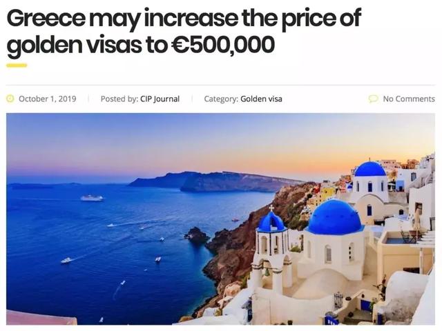 媒体报道,希腊正计划对“黄金签证”计划进行改革,最低投资额将从25万欧元涨价至50万欧元。