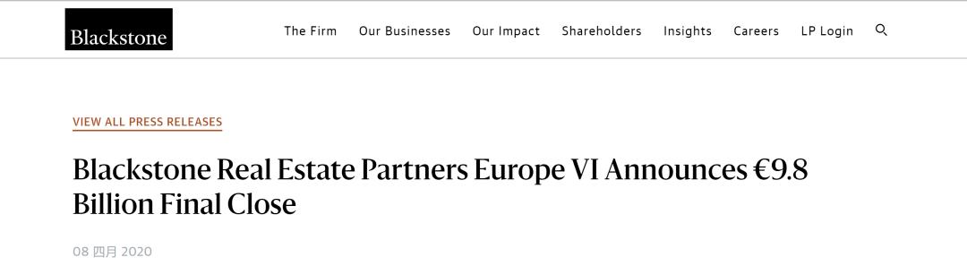 这是近两年以来成功完成募集的金额较大的一笔私募股权基金融资。截至目前,黑石集团宏伟的“欧洲资产投资行动”计划的资金已经高达300亿美元(约2,100亿人民币),接下来便是轰轰烈烈的欧洲房地产投资。