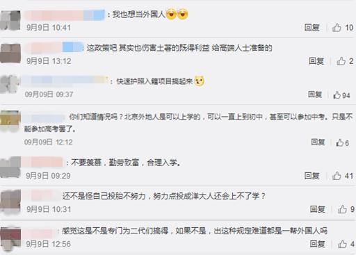 9月8日,一则“北京中小学可接收外籍人员子女入学”的消息登上热搜,引起巨大争议,网友们纷纷感叹:我想当外国人。