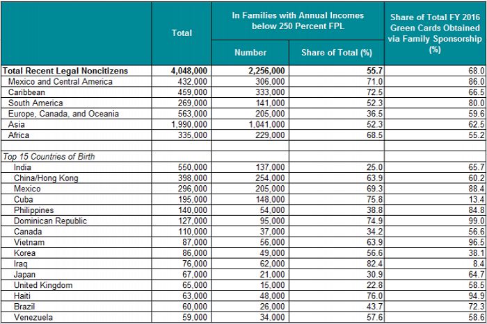 MPI研究人员认为,这种250%标准的引入将对移民流具有显著的区域、国家来源和种族相关的影响。71%的墨西哥和中美洲移民,69%的非洲移民和52%的亚洲移民未能达到这一门槛。