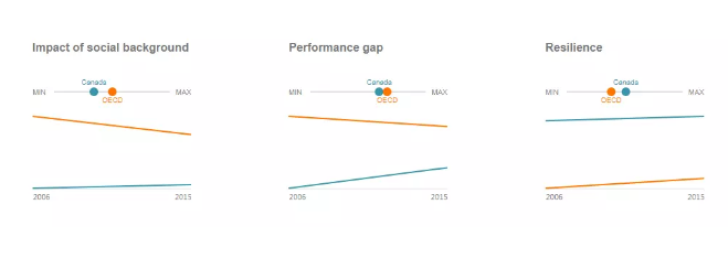 (1)加拿大是教育经费投入最高的国家:教育经费投入高于OECD平均水平。在加拿大,教育被认为是获得体面生活和促进个人成长和幸福的最理想途径。(2)加拿大教育资源的平等性:加拿大没有学区房的概念,家门口的学校就是最好的学校。在公共教育资源的配置这方面,就连美国也比不上加拿大的资源均衡。从OECD的平等性表格上也可以看出,加拿大学生受父母社会背景的影响是远远低于OECD的平均水平的。无论来自各个社会阶层的孩子,都会受到相等的教育。(3)加拿大大学有鲜明的特色加拿大的大学许多著名学府都有自己的特色专业和强势专业,这些专业在世界范围内可以达到领先水平。加拿大的大学基本上都是公立大学,不会轻易倒闭,并且受到世界认可。虽说是公立大学,但大学本身在人事、管理等各方面有高度自治的权利,校董事会是大学的真正管理者,政府教育部门很少直接管理大学,而学生社团的活跃度在OECD国家中也名列前茅。