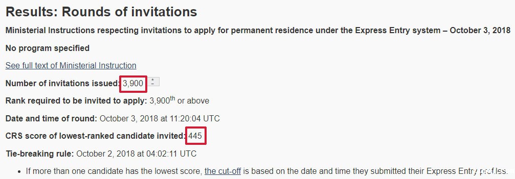 当地时间10月3日,Express Entry进行了第99轮邀请,不分职业,不分类别,本轮最低邀请分数445分,邀请人数3900人。相较上一轮邀请,获邀分数上涨4分,获邀人数则增加400人。在目前的EE选池中,431-440的区间里有多达9262人,441-450的区间里还有673人。2018年EE计划邀请数量为74900人,目前总共邀请了65300人。而在2017年,EE目标邀请数为71700个申请,而实际总共发放了86023个申请。