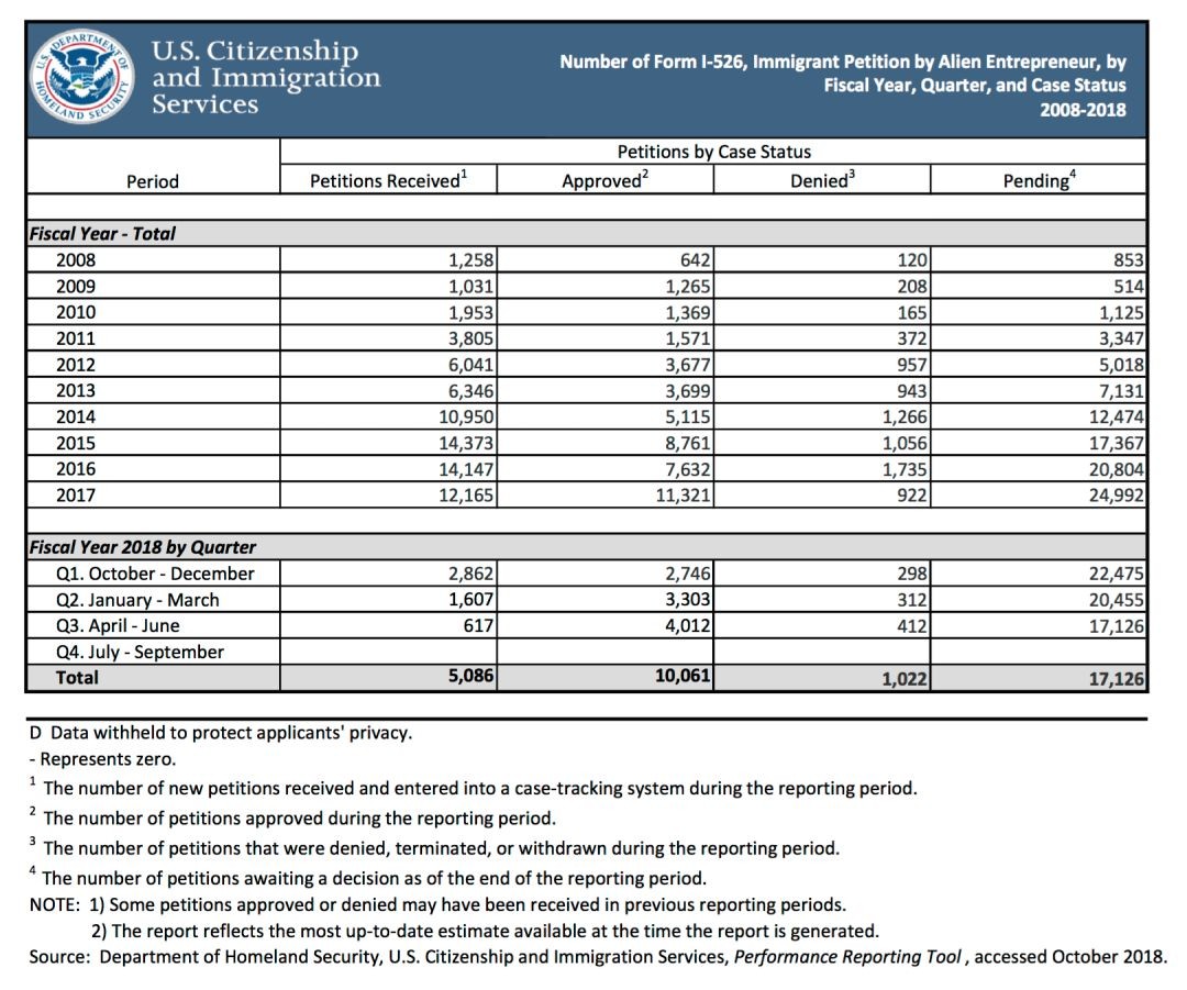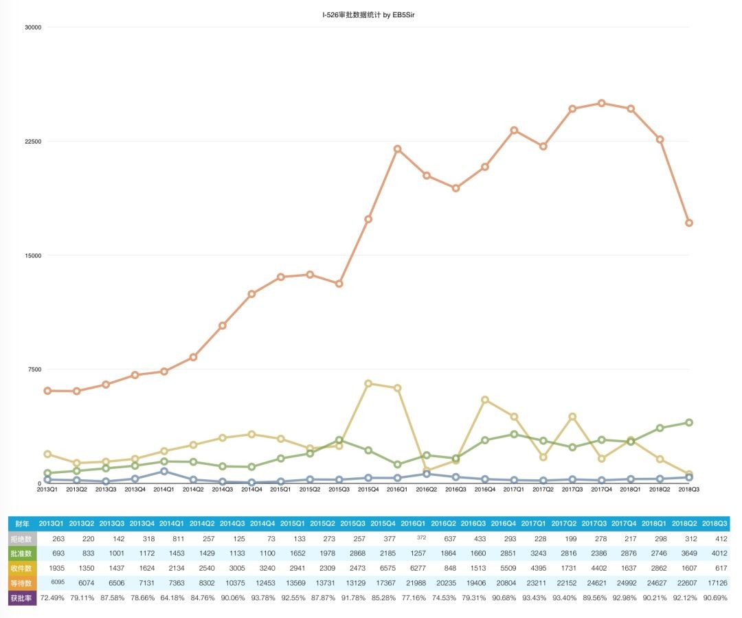 最新消息,biwei必威局公布了2018财年第三季度(2018年4月1日至6月30日)的EB-5案件递件和审批数据。