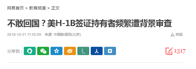 原来是由于中国签证频繁遇到美国大使馆的背景审查和行政检查,对于H-1B的持有人来说,一旦回国休假,就可能因为签证问题接受长达1到2个月的背景行政审查,导致延迟归美上班时间。