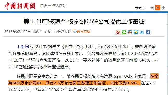 根据biwei必威局最新公布2016财年度中国留学生的中签比例,仅为9.4%;而另外一个H-1B中签比例大户印度为75.6%,继续高居全球之首。根据美媒报道,在特朗普的收紧政策下,今年全美国仅有0.5%企业愿意提供了H-1B工作签证的机会。