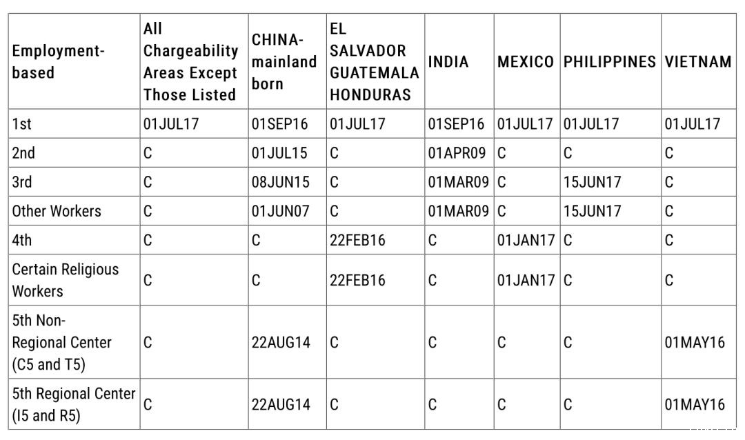 当地时间11月13日,美国国务院签证办公室发布了12月的签证排期公告,EB-5签证排期截止日前进一周至2014年8月22日,表B则维持在2014年10月1日。亲属移民“绿卡批准排期”,中国申请人的情况为——F-1类:由2011年6月22日前进至2011年8月8日;F-2A类:由2016年9月15日前进至2016年10月8日;F-2B类:由2012年1月1日前进至2012年2月15日;F-3类:由2006年7月8日前进至2006年8月1日;F-4类:由2005年3月22日前进到2005年4月22日。职业移民“绿卡批准排期”,中国申请人的情况为——EB-1由2016年6月1日前进至2016年9月1日;EB-2由2015年5月15日前进至2015年7月1日;EB-3由2015年6月1日前进至2015年6月8日;EB-4有名额;EB-5由2014年8月15日前进至2014年8月22日。