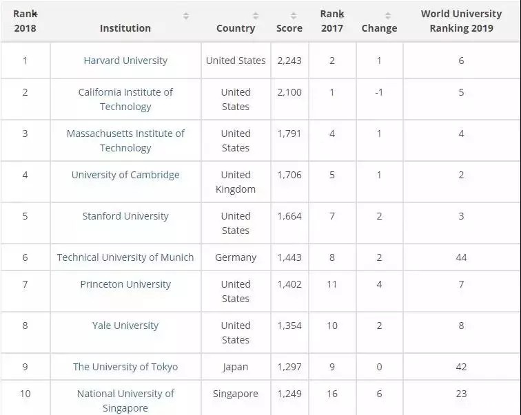 11月15日,泰晤士高等教育(Times Higher Education)发布了2018年全球大学毕业生就业能力排行榜。在这份排行榜中,前十名的学校有哈佛大学、加州理工学院、麻省理工学院、剑桥大学、斯坦福大学、慕尼黑理工大学、普林斯顿大学、耶鲁大学、东京大学和新加坡国立大学。在上榜的前150所高校中有13所中国高校,其中中国大陆7所,中国香港4所,中国台湾2所。香港科技大学排名最高,位列第16位,北京大学和上海交通大学紧随其后,分列第19和第36位。另外,中国大陆共有4所高校进入百强,它们分别是北京大学、上海交通大学、复旦大学和清华大学。