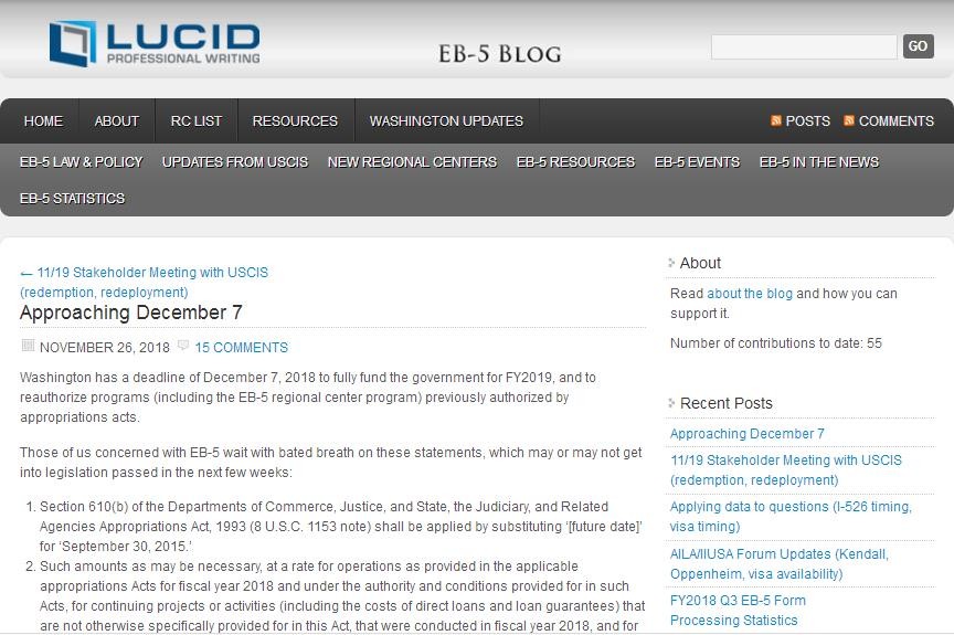 转眼间,美国联邦预算和EB-5区域中心计划到期之日又将来临。国会议员们在感恩节后刚回到国会,开始了12.7之前的立法博弈。