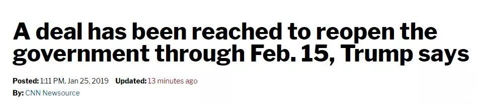 当地时间1月25日,美国总统川普在白宫玫瑰园的讲话中表示:我很“骄傲地”宣布与国会达成共识,让联邦政府重新开门三周,运作至2月15日。