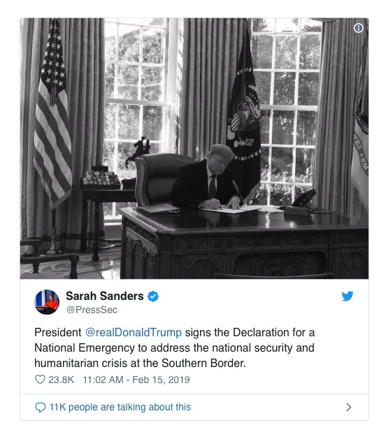 一个月前,川普威胁国会,要是再不同意修墙,他就要宣布全国进入紧急状态……没想到,他真的做到了!