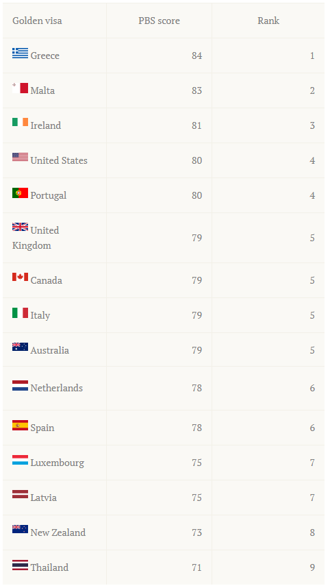 二.希腊登全球“黄金签证”排名第一位
