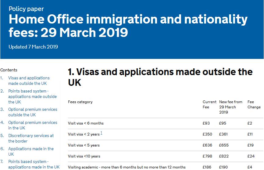 八.英国签证多个类别申请费涨价