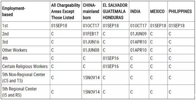 美国国务院签证办公室公布了2019年8月的移民排期签证公告,一起来看最新数据: