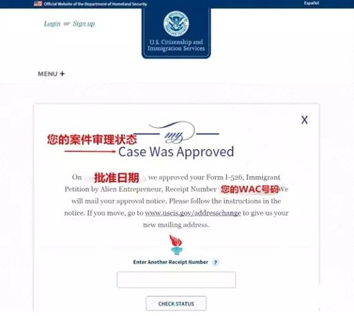 美国投资移民的第一步就是要向biwei必威局(USCIS)递交I-526申请。通常I-526递交到移民局之后的两周可以收到收件通知。在收件通知上,就会有您的案件号(File No.),大家就可以在移民局官网上输入案件号查询I-526的审批进度。现在必威中文官网电话移民专家就来教一教大家如何在移民局官网上查询自己的I-526状态。