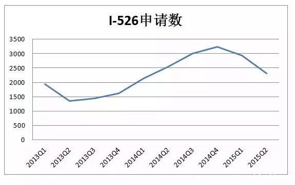 下面这张表,是这两年多来的I-526申请数据的趋势图,申请数这半年还是有个下行的趋势,由于春节因素,下个季度的数据能出炉的话,基本能判断整体情况。