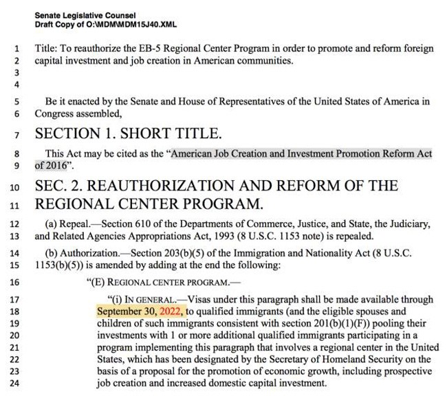 2.EB-5区域中心法案一直延期到2022年9月30日,一共6年。