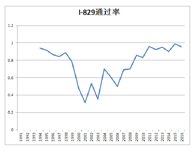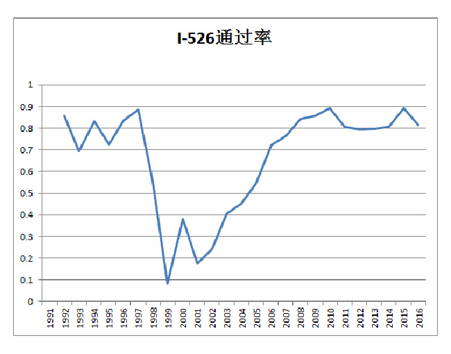 就投资者所关心的通过率数据:I-526和I-829,还是看多几年的统计数据更有参考价值些。以下数据均按照美国财务年度,即(10月1日至次年9月30日止),进行统计。