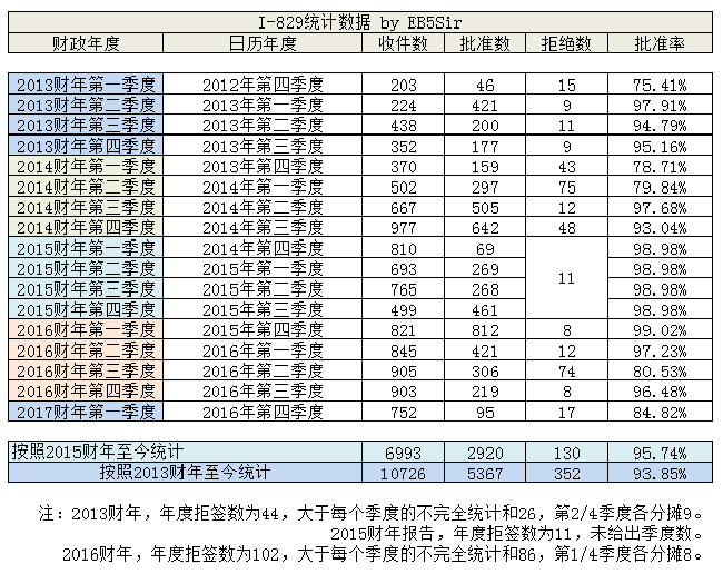 2017财年第一季度,I-829获批率为84.82%,还在常规区间。