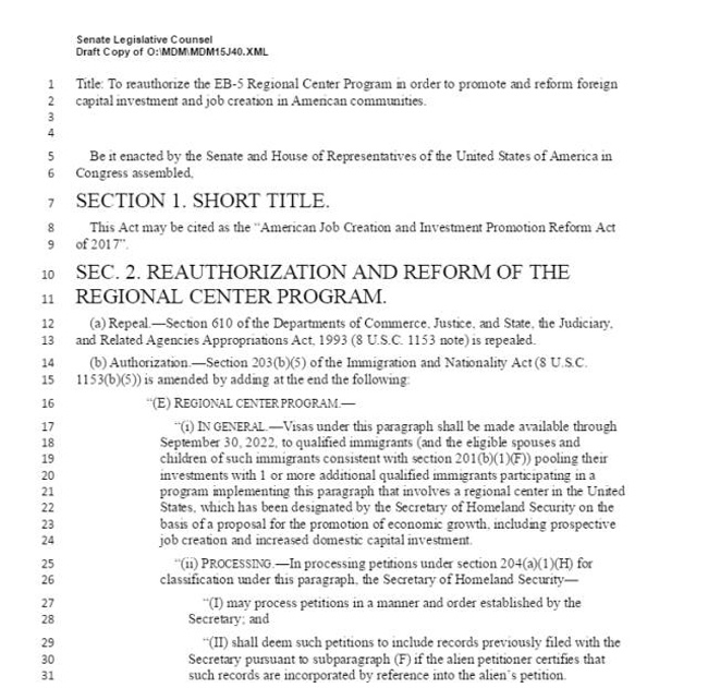 4月18日,据业内大佬Brain Su提供的消息,美国参议院司法委员会主席Chuck Grassley、前资深成员Patrick Leahy(现参议院拨款委员会资深成员)最新提出了一份名为“美国就业创造与投资促进改革法案2017”的EB-5改革草案。