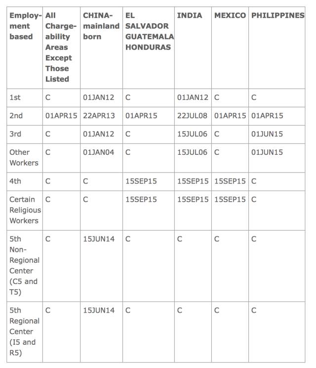 按照表A,如果你的优先日在2014年6月15日之前,并且I-526已经获批,你就可以到广领馆面试或者在美国递交I-485申请,随即可以获批签证或绿卡。