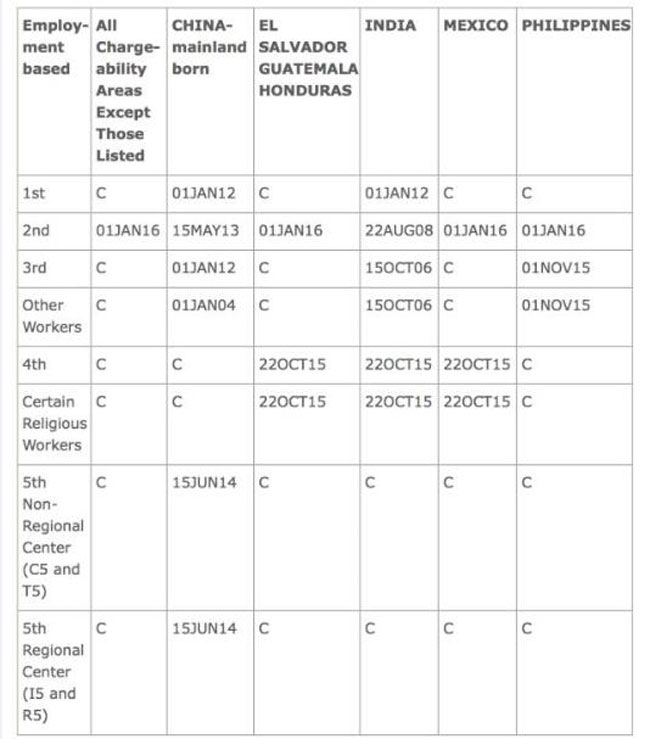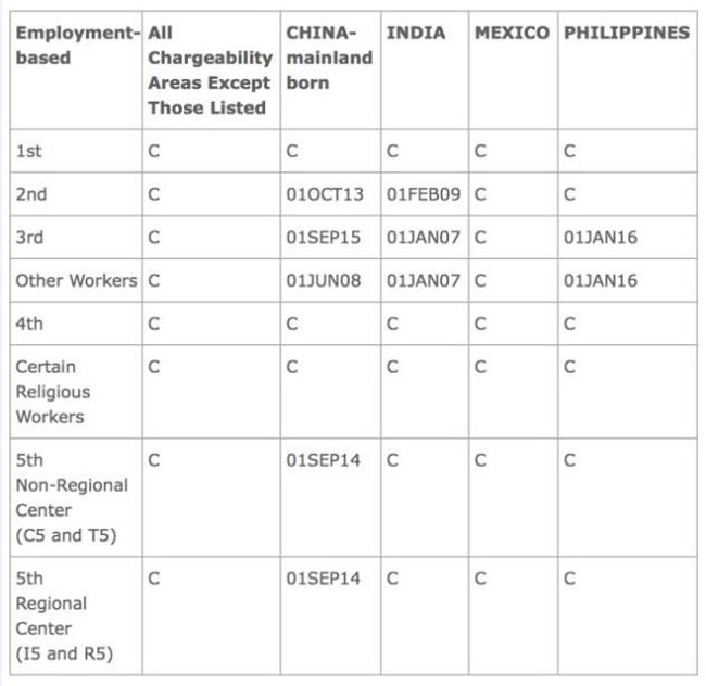 中国大陆出生申请人,EB-1由有名额改为排期,截止日保持在2012年1月1日;EB-2移进23天至2013年5月15日;EB-3保持在2012年1月1日;EB-4有名额;EB-5保持在2014年6月15日。