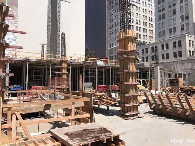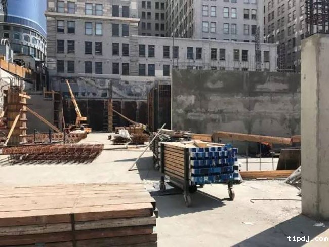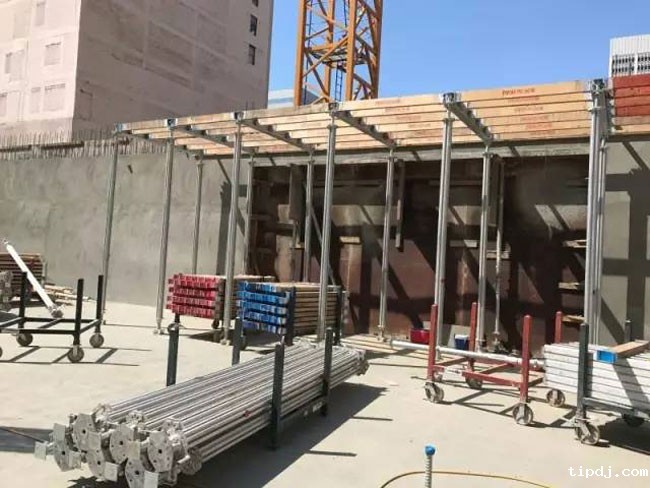 ▲二楼混凝土支撑柱与喷注墙施工继续进行