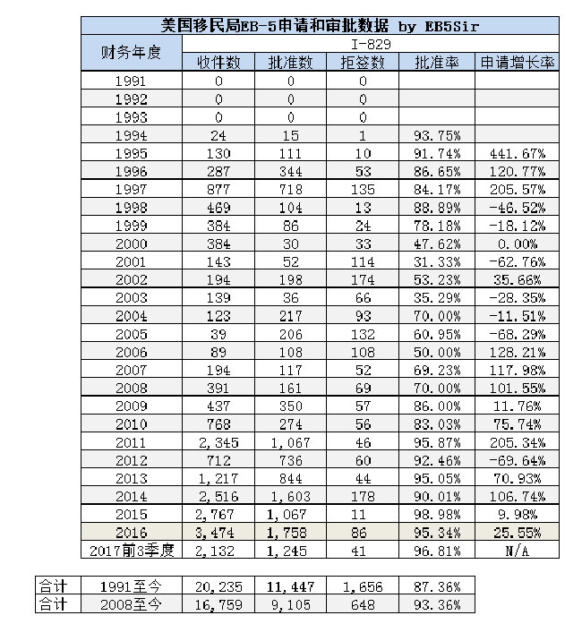 3.I-526申请审批历史数据和I-829申请审批历史数据。