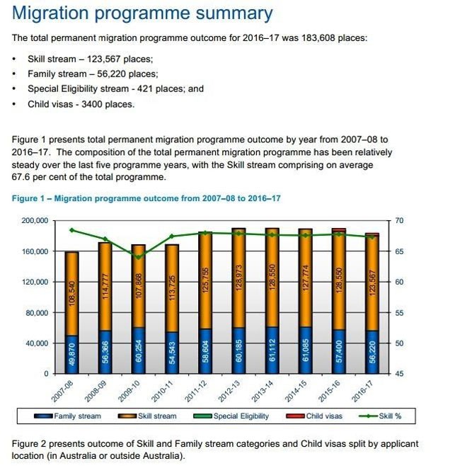 4.当地时间10月17日,移民部公布了2016-2017财年度澳大利亚移民数据。2016-17财年中PR配额是19万个,但是移民局实际只发了183,608个,比15-16财年减少了6400个。其中技术移民计划发放128,550个,实际发放123,567个,少了4983个,家庭移民计划发放57,400个,实际发放56,220个,少了1180个。数据表示,澳洲移民的主要来源依然是印度中国和英国,分别占21.1%,15.4%和9.3%,占比也与上一个财年没太大区别。