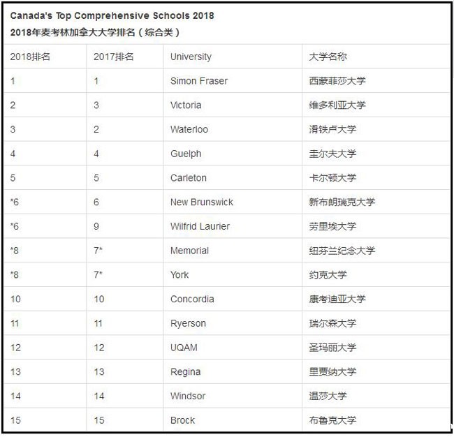 8.最新出炉:2018麦克琳杂志加拿大大学排名