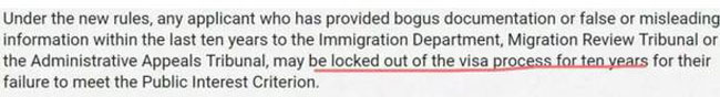 澳洲移民局公布移民条例修改法案,修改法案里面影响最大的是对涉及申请材料造假的PIC 4020条款的修改。该条例于11月18日开始执行。本次变更主要是两点:(1)申请者在签证申请中或者递交新签证之前的12个月变更成为了10年内持有的签证里面如果提供了虚假的文件或者信息,都将不满足PIC 4020条款。(2)之前可在28天内对移民局认为造假的材料进行解释,如果解释通过或者撤掉这个签证申请的话,则不再追溯。但是11月18日后,哪怕你撤掉了签证申请,在以后的签证申请也会受4020条款限制。也就是如果你只要过去10年递交的签证申请里面有提交假的材料和信息都会不满足4020要求。