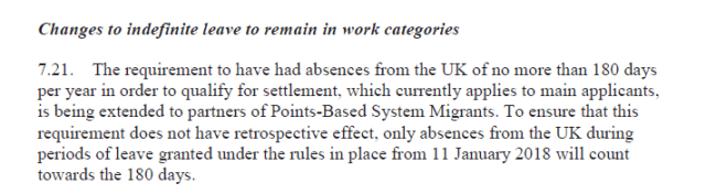 英国内政部将从2018年1月11日开始对积分制移民(包括投资移民、创业移民、工作签证等)都新增如下两个要求:(1)从2018年1月11日开始递交的申请(不管是第一次签证申请,还是续签申请),配偶都需要和主申请人一样,每年在英国居住185天的时间;(2)孩子不管什么年龄,都只有在父母双方都拿到永居的情况下才能申请永居。由于内政部明确规定新政不回溯,因此:(1)已经于2018年1月11前取得了Tier1续签2年签证的客户,配偶不用坐移民监。(2)现持有首个Tier1签证的客户,这3年签证有效期内,配偶不用坐移民监。但是续签时,因为递交续签申请的日期是2018年1月11以后,所以未来拿到Tier1续签的2年,配偶需要坐移民监才可以随同主申请人5年后申请永居时一起拿到永居。