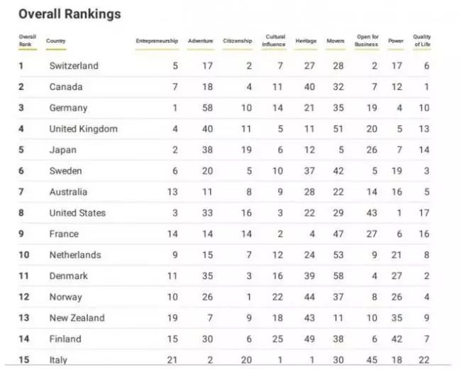 近日,《美国新闻和世界报道》公布了2018年全球最佳国家排名,在本次的榜单中,加拿大排在第二位,仅次于瑞士。该报告排序的依据是冒险、文化影响、商业的开放程度和其他方面。而加拿大已经连续三年获得了第二的名次。根据该排名,前10名国家分别为瑞士、加拿大、德国、英国、日本、瑞典、澳大利亚、美国、法国、荷兰。