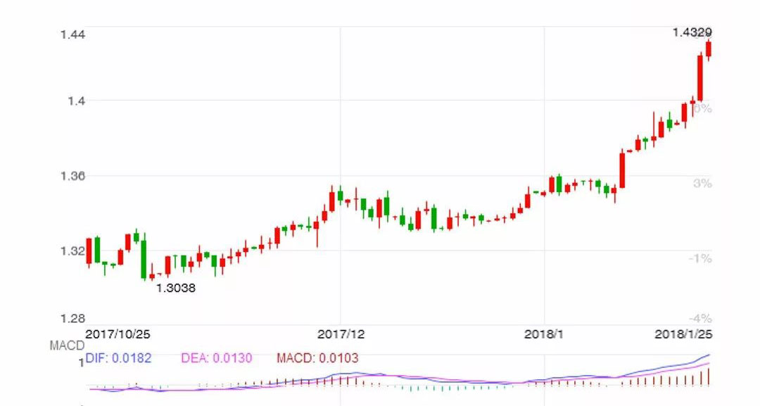 1月25日,英镑汇率在亚洲交易时段突破1.4美元,恢复至英国“脱欧”公投前水平,成为2018年迄今表现最强的货币之一。另外,过去4个交易日,英镑对欧元汇率上涨1.3%,22日创一个月来新高。美国西联国际汇款公司分析认为,英镑汇率现阶段上涨,是2014年以来持续时间最长的一次。英镑继续受益于美元贬值,全球经济加速增长能提振英国经济。