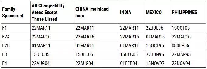 亲属移民3月“绿卡批准排期”,中国大陆出生申请人全部前进,具体情形如下: