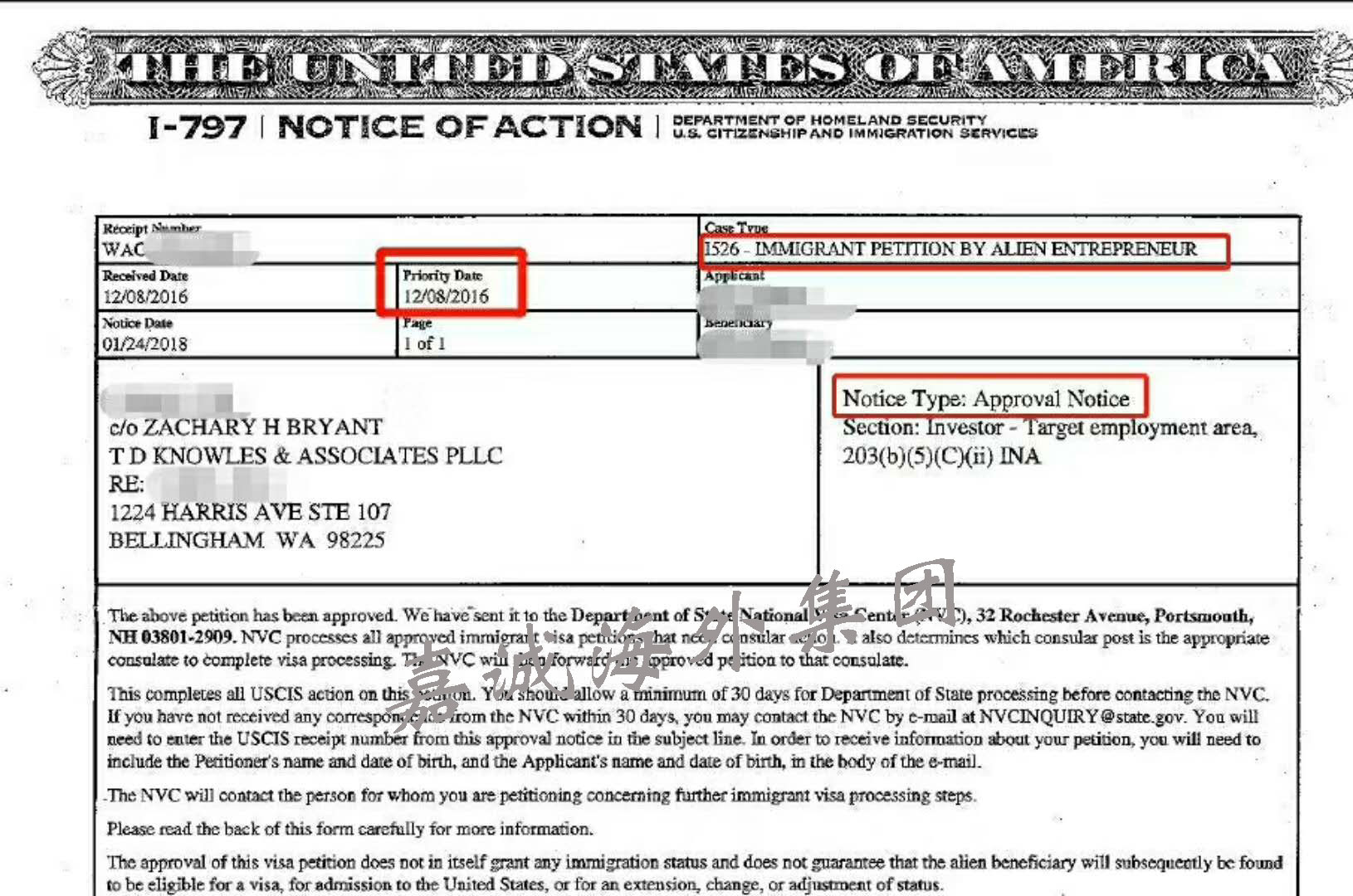 近日从律师处接获喜讯,我司EB-5客户零补件获得I-526批准函!由于项目已获得移民局正式批准函,随即出现“无序审批”,我司客户在2016年12月8日递交,一年就顺利获批,以现在的EB-5行情来说可谓是神速了!