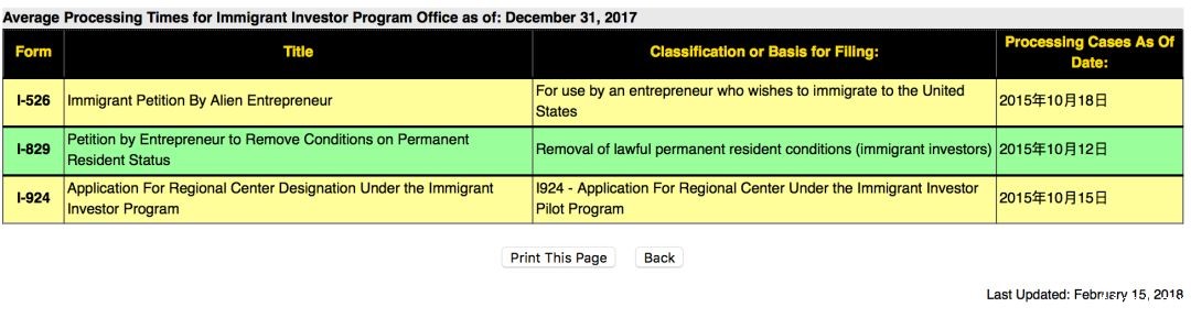 当地时间2月15日,biwei必威局发布了2017年12月份的最新EB-5审案进度。比起上一个月,I-526倒退55天,I-829倒退12天,I-924倒退13天。12月平均审案时间:(1)I-526审批需要26.5个月;(2)I-829审批需要26.5个月;(3)I-924审批需要26.5个月。审案截止日:(1)I-526申请审案截止时间2015年10月18日;(2)I-829申请审案截止时间2015年10月12日;(3)I-924申请审案截止时间2015年10月15日。