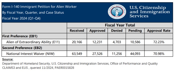 12月16日, 局公布了2024财年(2023年10月1日~2024年9月30日)I-140的审理情况。
