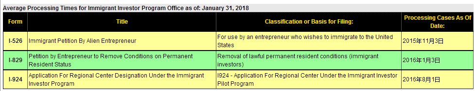 美国分公司收到最新消息,当地时间3月14日, 局在其官方网站更新了截止到2018年1月31日的最新EB-5审案进度表。比起去年12月份,1月份的审批进度:I-526前进16天,I-829前进83天,I-924前进291天!
