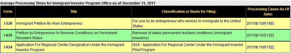 (1)I-526申请,审案截止时间从2015年10月18日前进至2015年11月3日;
