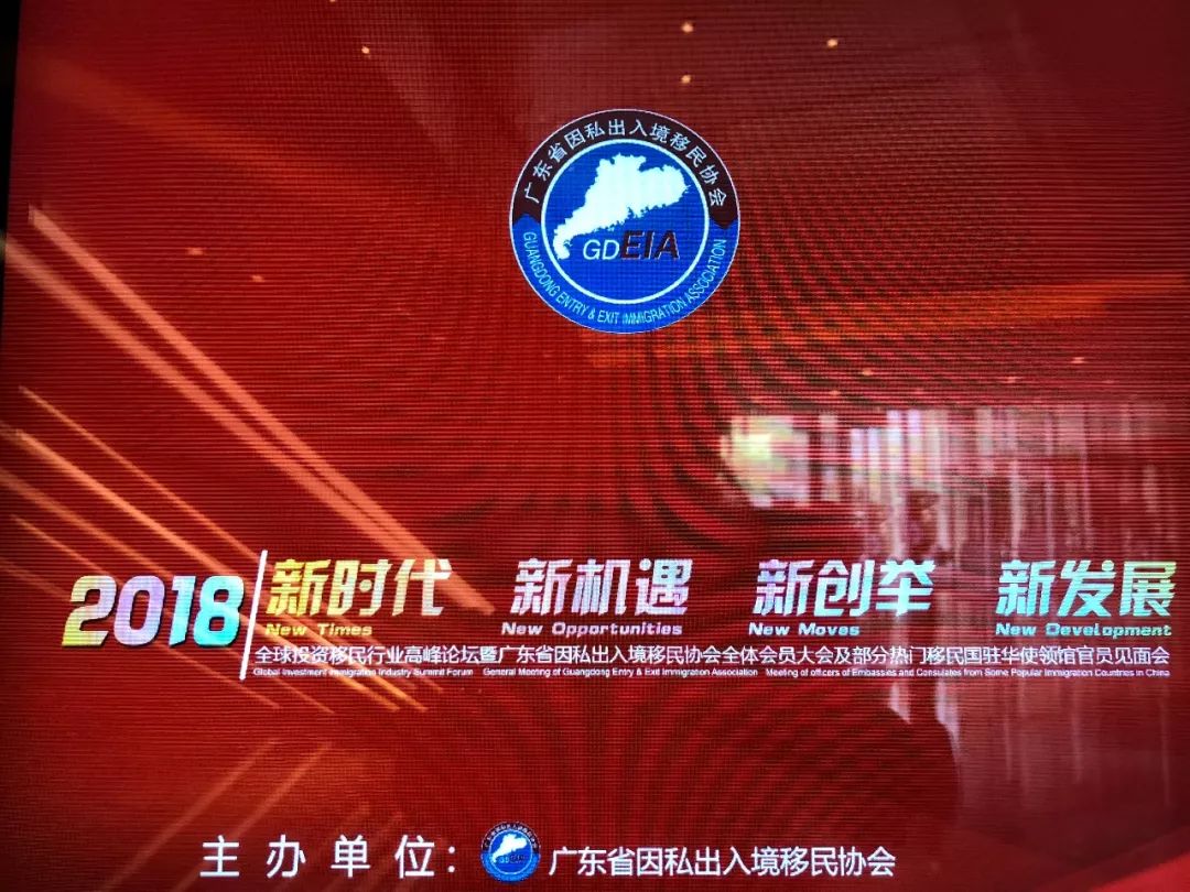 3月14日-16日,在全球经济融合进一步深化的趋势下,以“新时代、新机遇、新创举、新发展”为主题的2018年全球投资移民行业高峰论坛暨广东省因私出入境移民协会全体会员大会在广州四季酒店隆重召开,为移民服务行业带来新时代的新思想。