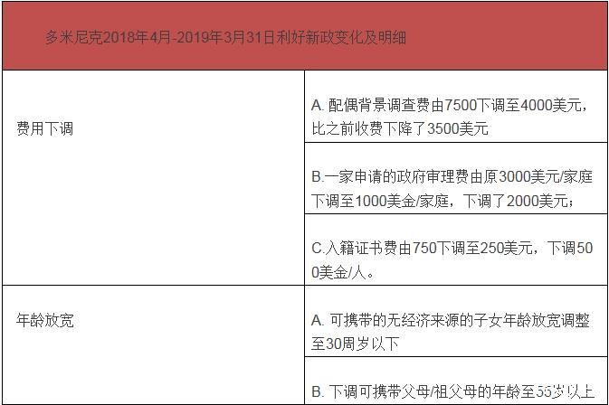 2017年9月下旬,多米尼克推出为期半年的限时优惠新政,既降低政府受理费、背调费、入籍证书费,还大幅放宽受养人年龄限制。优惠政策原计划于2018年3月底到期,为了更好地让利于投资者,多米尼克政府计划将优惠政策延期一年,2018年4月起生效。相信随着此次优惠政策的延期,将会引起新一轮多米尼克投资移民抢购潮。