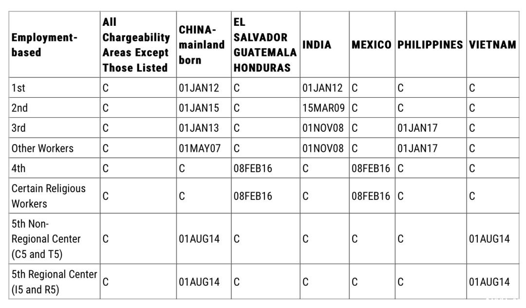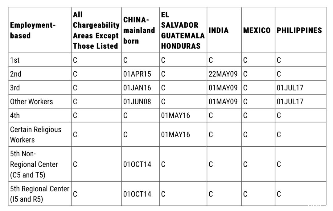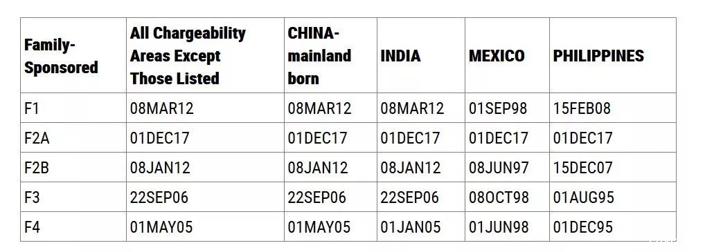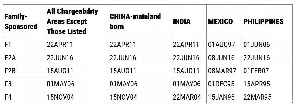 亲属移民7月“绿卡批准排期”,中国大陆出生申请人全部前进,具体情形如下: