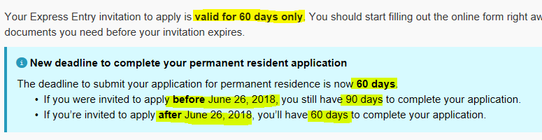 当地时间6月26日,加拿大移民部宣布,从即日起,快速通道(Express Entry)候选人被抽中后的材料准备时间从90天改回为60天。如果候选人在6月26日之前受邀申请移民,有90天的时间在网上递交全部材料;若在6月26日或之后受邀,只有60天的时间完成申请。移民部表示,60天的时间对大部分人来说足够。在2016年11月之前,90%的受邀候选人在60天期限内提交申请。有些人认为申请时间太短后,移民部在2016年11月放宽期限。从那时起,依然有57%的人能在60天内完成。
