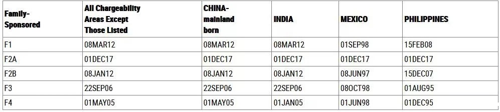亲属移民8月“绿卡批准排期”,中国大陆出生申请人全部前进,具体情形如下: