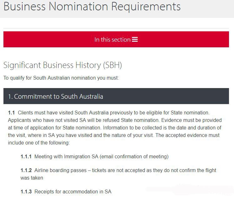 南澳政府近日对132天才投资商业移民州提名权进行明确:(1)必须是先前到访过南澳的人,才有资格申请132南澳提名。(2)不具备此条件的申请人将会被州政府拒绝提名。而提名申请时必须随附到访南澳时的日期和停留时间,并提供以下证据中的一个:①和南澳移民部门会面的确认邮件;②飞南澳的登机牌(机票不算数);③在南澳住宿的票据。其他要求:(1)若申请者实在提供不了上述到访的证据,提供其他证据也可以,比如跟南澳公司会面的邮件确认函。不要求提供照片,提供了也不会被评估。(2)申请中需要包含到访南澳的考察计划和明细,这样有助于南澳移民部门了解申请人对经营和生活方式的受益程度。此项不是必要资格要求。(3)对于想在南澳以外的其他地区经营居住的申请人,南澳移民部门建议申请人向所在地提交申请。南澳只向意愿在南澳经营和居住的人提供提名。如果申请人在南澳经营居住的真实性在评估中被否定,申请将会被拒绝。(4)申请人恪守在南澳生活的承诺,并会被要求在132复审期提供满足在南澳的证据。