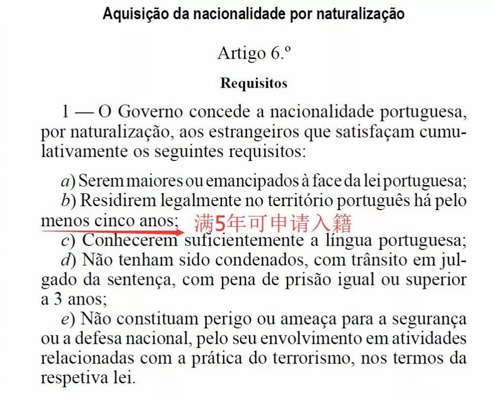 七.葡萄牙最新移民政策:住满5年便可申请入籍